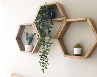 3pieces Lot Hexagon Shaped Decorative Wall Shelves Wood Wall