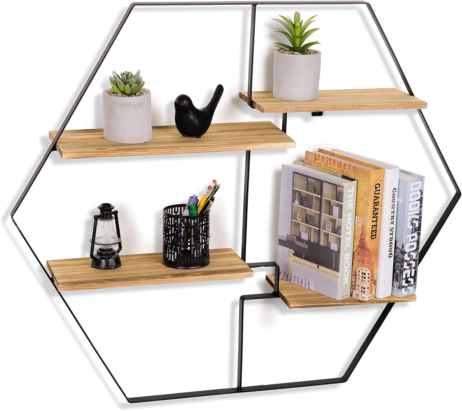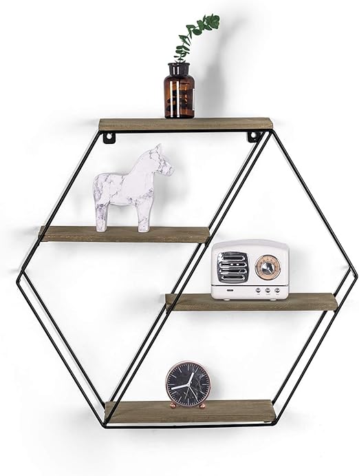 Hexagon Decorative Hanging Wall Shelf Wrought Iron Storage Rack