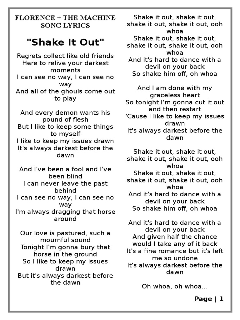 Shake It Out Lyrics And Music By Florence The Machine Arranged By Tnt Mari3rocha