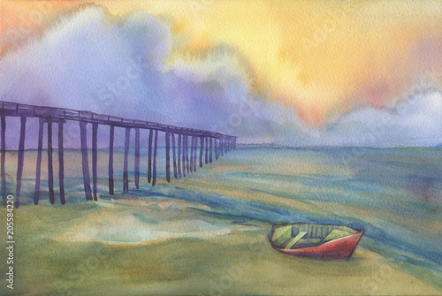Boat Beach And Sunset Painting By Carlos Casamayor