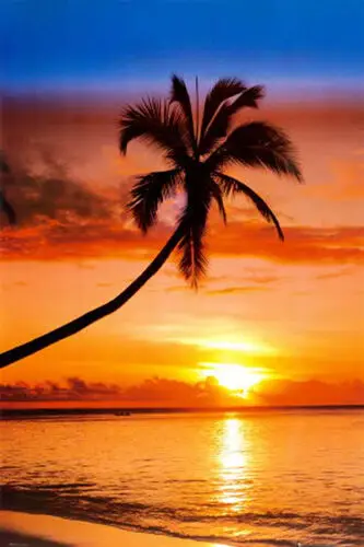 Watercolor Painting Green Ocean Sunset Palm Trees Beach Florida