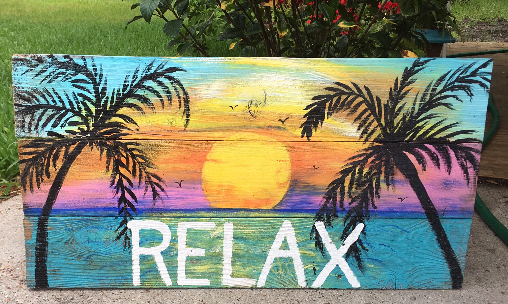 Hand Painted 3 Piece Ocean Beach Paintings Sunset Palm Trees